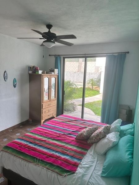Casa solida y en buen estado, 1 piso, el patio trasero esta bardeado. (Propiedad Ejidal)