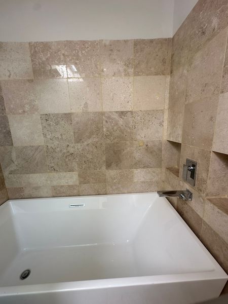 Baño con tina y doble lavabo