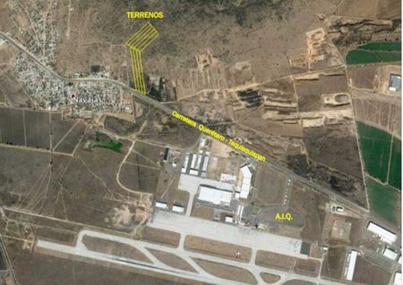 Estupendos terrenos para uso industrial con superficie total de 66,887.6 m2, ubicados en el Ejido Navajas, El Marqués, Qro., frente a la zona de pistas del Aeropuerto Internacional de Querétaro.