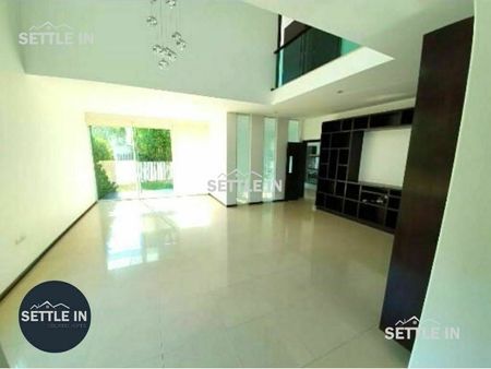 Planta baja: Sala comedor con doble altura, cocina equipada, con barra y antecomedor, alacena, terraza, jardín y cochera para 4 autos.