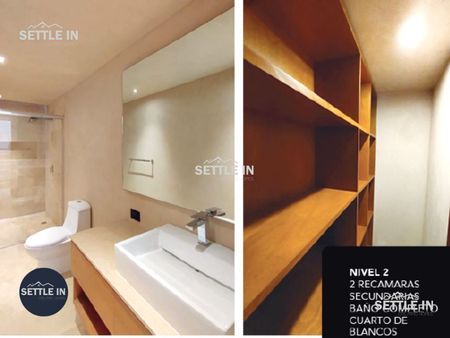 Primer nivel: 3 recámaras, principal con baño vestidor, 2 recámara secundarias comparten baño closet para blancos.