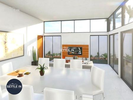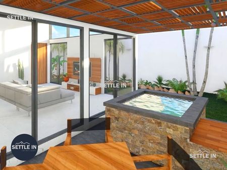 La casa tiene doble altura, en sala comedor y una preciosa vista al jardín.