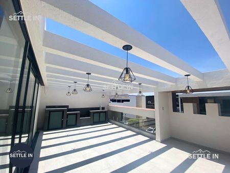 - Planta Baja: Cochera para 2 autos, Sala comedor, 1/2 baño, Cocina abierta totalmente equipada con torre de hornos, lavavajillas , cuarto de maquinas y jardín.