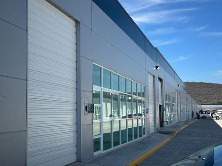 Amenidades del parque: Vigilancia 24/7 y patrullaje, control de acceso electrónico, andén de carga común, vialidades amplias, áreas verdes y cancha deportiva.