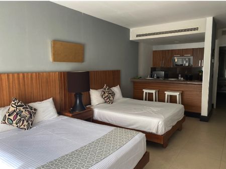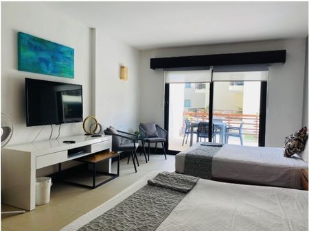 Este estudio lleno de luz natural es perfecto para quienes buscan un escape caribeño para vacacionar o una propiedad rentable para alquileres vacacionales. Cuenta con un diseño de planta abierta, una cocina totalmente equipada con barra desayunadora, dos camas tamaño queen, un centro de entretenimiento y una pequeña área de descanso. Se abre a un balcón privado con vistas al mar, ideal para disfrutar del café por la mañana o una copa de vino por la tarde. El condominio tiene pisos de loseta y acabados de alta calidad que son duraderos y fáciles de mantener. Se ofrece a la venta completamente amueblado y listo para generar ingresos de renta de inmediato.
