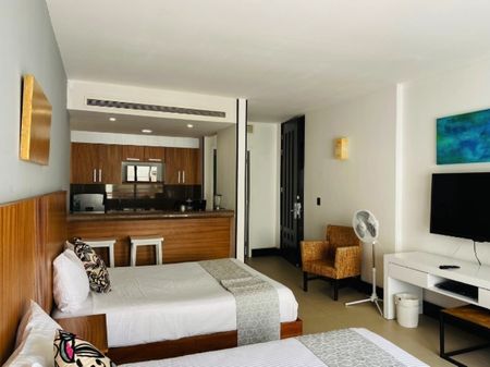 Aldea Thai, con su ambiente estilo resort y su fantástica ubicación frente al mar, es una opción extremadamente popular entre los turistas. Ofrece acceso directo a la playa, una alberca con vista al océano y un bar dentro de la piscina, además de un gimnasio. El complejo es seguro, con acceso controlado y seguridad las 24 horas. También cuenta con un lobby estilo hotel, elevador y estacionamiento. La zona ofrece acceso confiable a internet de alta velocidad.