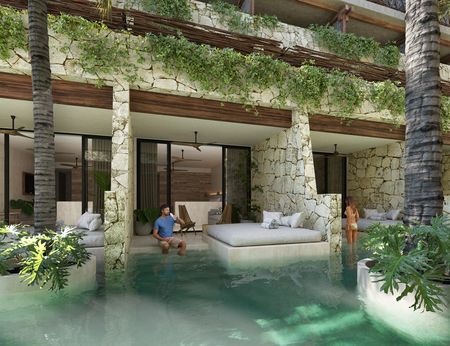 Alquimia es un nuevo desarrollo de departamentos estilo resort en la exclusiva zona residencial de Aldea Zamá en Tulum. Este hermoso complejo se encuentra sobre la avenida principal de la playa y a tan solo minutos de la zona hotelera y las hermosas playas de arena blanca, las famosas ruinas mayas y el centro de la ciudad bohemia y elegante de Tulum. Situada a mitad de camino entre la playa y la avenida, Aldea Zamá ofrece la ubicación ideal para disfrutar de todo lo que este destino turístico tiene para ofrecer.