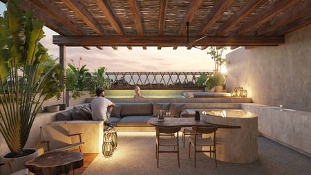 Estos estudios, suites, departamentos y penthouses de 1 y 2 recámaras ofrecen diferentes diseños y distribuciones para satisfacer sus necesidades. Cuentan con cocina o cocineta americana, sala de estar y comedor y un balcón o terraza privada. Las unidades en planta baja tienen una terraza de buen tamaño con alberca. Mientras que los lujosos penthouses cuentan con rooftop privado con una pequeña cocina, un comedor y una piscina. Todos departamentos tienen pisos de concreto pulido y acabados de primera calidad que son duraderos y fáciles de mantener. Encontrará paquetes de muebles disponibles para comprar directamente del desarrollador e incluyen todo, desde muebles cuidadosamente seleccionados hasta accesorios de cocina, decoraciones e incluso obras de arte.