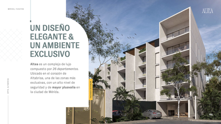 Altea es un complejo de lujo compuesto por 26 departamentos. Ubicado en el corazón de Altabrisa, una de las zonas más exclusivas, con un alto nivel de