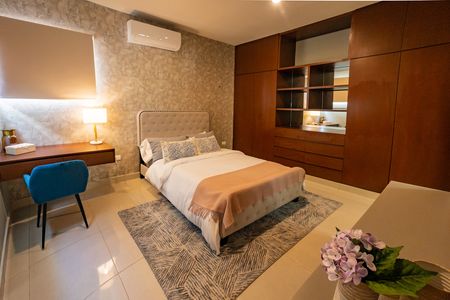 Recámara principal con clóset vestidor y baño.