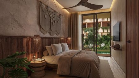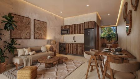 Estos nuevos departamentos de 1 y 2 habitaciones ofrecen diferentes diseños y distribuciones para satisfacer sus necesidades, incluyendo unidades en la planta baja con acceso directo a la alberca y jardines, y unidades de nivel medio y superior con terrazas. Todas las modernas residencias cuentan con un espacioso plano de planta abierto y reciben mucha luz natural. Tienen una cocina completamente equipada, una sala de estar con sofá cama, un comedor y un patio o terraza privado con jacuzzi, perfecto para relajarse en los días calurosos o en las tardes tranquilas. Estos departamentos tienen pisos de azulejo y acabados naturales que son duraderos y fáciles de mantener. Se ofrecen a la venta completamente amueblados y listos para mudarse con aire acondicionado, un televisor de 50 pulgadas, caja fuerte, utensilios de cocina y electrodomésticos, y ropa de cama y toallas.
