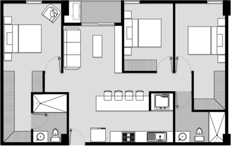 Estos espléndidos departamentos presentan un diseño de 3 recámaras, 2 baños y 2 cajones de estacionamiento privado. Se entregan en obra gris, con suelo de cerámica de alta calidad, brindándole la oportunidad de personalizar el espacio según sus preferencias, ya que no incluye puertas, sanitarios y lavabos. Además, para su comodidad, la cuota de mantenimiento mensual es de tan solo $3,443.00.