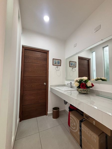 Recámara principal con closet y baño completo.
