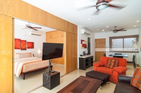 Studio One cuenta con una increíble área de alberca en la azotea con espectaculares vistas al mar Caribe y a la ciudad. Por la noche, se puede ver todas las estrellas o incluso el resplandor de Cozumel. El edificio es seguro con entrada privada, seguridad las 24 horas, acceso por ascensor y estacionamiento.