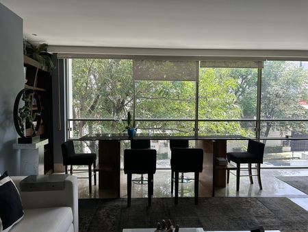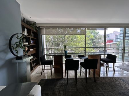 En el segundo pidos de un espacioso condominio de únicamente 3 residencias. este depto. con muy buena iluminacion en una calle amplia y arbolada. Cuenta con muy buan alturay unos vestidores y bañoes mega amplios. Hay mucha paz debido al poco movimiento que presentan los dos vecinos. Comparte un Gimnasio y vapor en àrea común. Se puede estacionar hasta 4 Autos y Cuenta con elevador y vigilancia las 24 horas.