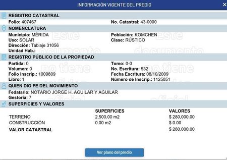 Terreno ubicado en la zona de Komchen de 2,500 m2 en su totalidad, con medidas de 50 m de frente x 50 m de fondo.
