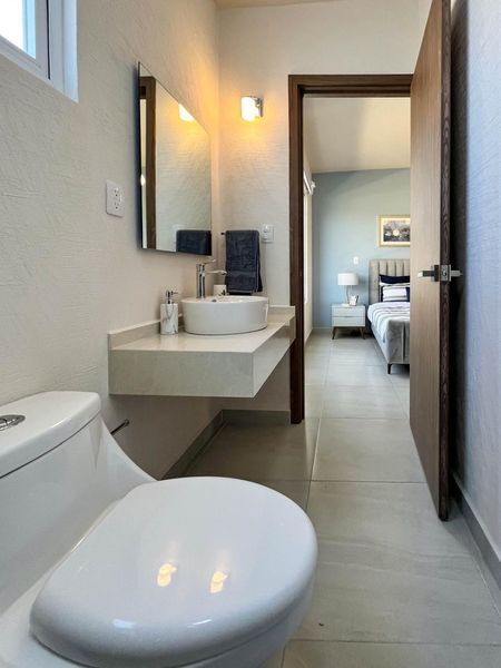 Recamara principal con walk-in closet y baño privado, las 2 recamaras secundarias, con closet y comparten baño.