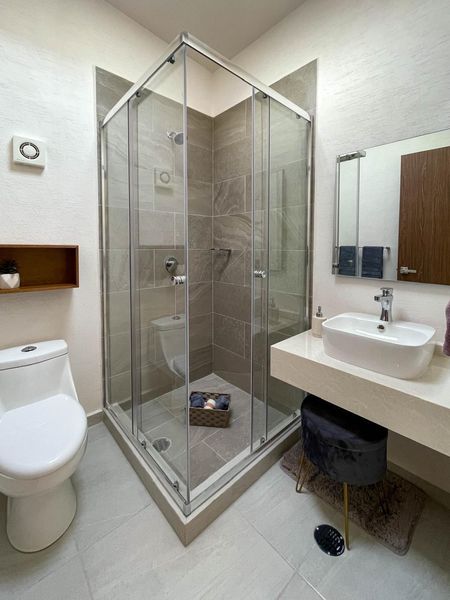 Recamara principal con walk-in closet y baño privado, las 2 recamaras secundarias, con closet y comparten baño.