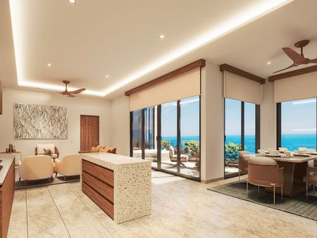 The third level has a two-bedroom apartment with a terrace and Jacuzzi, it houses 4