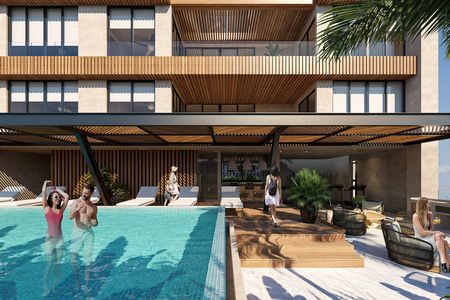 The second level houses the amenities area, has a roof garden with pool, bar and gym,