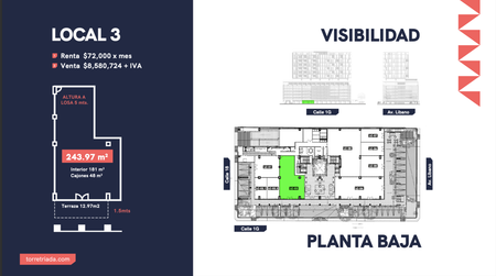 - LC-03 Local de 181 m2 interior + 12.97 m2 terraza + 4 estacionamiento = 243.97 m2