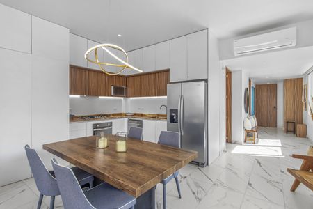 Ubicado en uno de los edificios más codiciados de Puerto Vallarta, este sofisticado condominio de 1 recámara y 2 baños combina diseño minimalista con acabados naturales y una atmósfera cálida, ideal para quienes buscan estilo y comodidad en una sola pieza. Su distribución abierta y luminosa crea una experiencia de vida moderna, fluida y funcional, perfecta tanto para residir como para rentar.