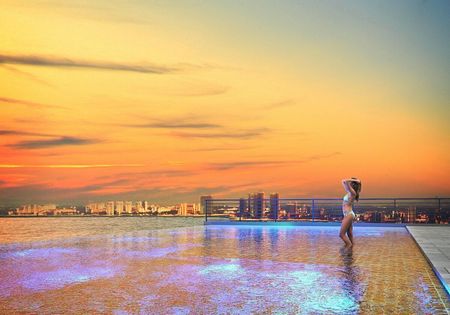 Piscina infinita con vista al mar.