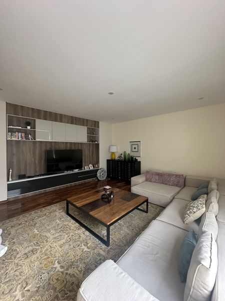 Salón de Estar con área de tv y Bar con salida a la terraza y jardín.