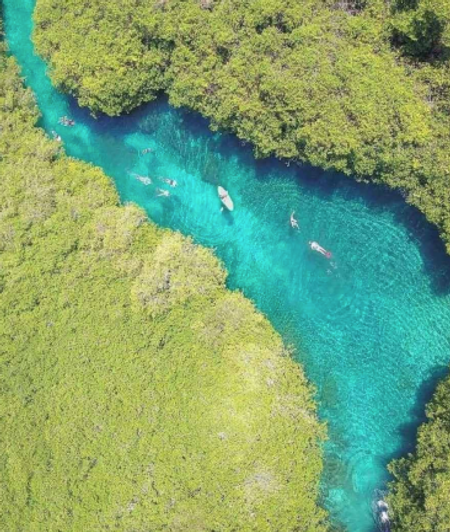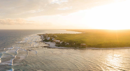 Rodeado de manglares, cenotes y sobre todo frente a la playa.