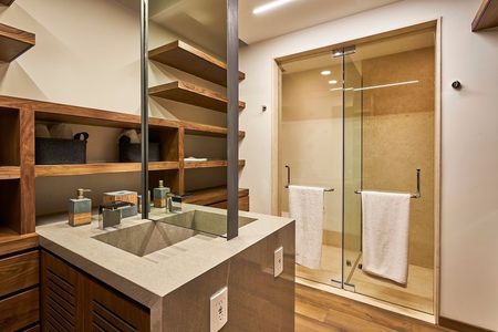 Cada residencia cuenta con 3 habitaciones, cada una con baño y vestidor propios; 2 medios baños ubicados estratégicamente dentro de la casa, 1 Tv, room en la planta baja y 1 family room en el área de habitaciones.