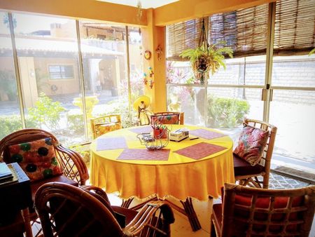 Ubicación, Ubicación, Ubicación. Hermosa casa de una sola planta en el Fraccionamiento Blue Parrot, ubicado a un lado del Hospital de San Antonio Tlayacapan y Farmacias Guadalajara. Ésta casa de 2 recámaras y 2 baños, está lista para ser habitada, totalmente amueblada y con un gusto exquisito por el arte. Sus dos terrazas te llevarán a disfrutar de dos ambientes diferentes, una en primera planta rodeado de mosquitero y la segunda con vista al lago parcial, al cerro y a los hermosos murales que decoran éste Fraccionamiento. Sus áreas comunes cuentan con alberca, terraza y baños.