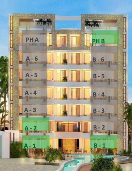 - Gimnasio con vista al mar, 2 Albercas con área para niños, 2 Terrazas, Bussiness Center, Seguridad 24/7 y cámaras de vigilancia, Caseta de Administración, Area de juegos para niños, Marina seca, Lobby, Terraza Zen, Area de baños, Elevador y Estacionamiento.