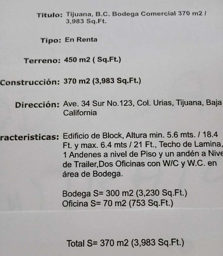Ubicacion muy atractiva , area de bodega, con sus 2 oficinas 2 wc , 2 andenes uno nivel de piso y otro nivel trailer , apta para tu giro.