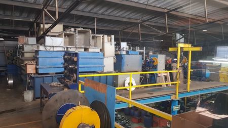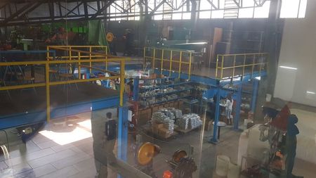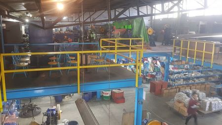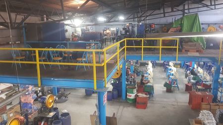 Las bodegas están en uso con maquinaria pesada fabricando.