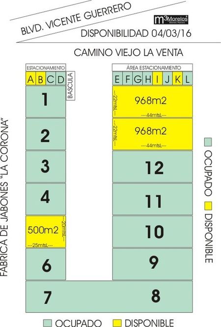 Bodega de 968 metros cuadrados con oficinas en la entrada de Acapulco llegando de Chilpancingo, casi sobre el bulevar Vicente Guerrero, forma parte de un conjunto de bodegas. Ideal si se pretende que el transporte foráneo no entre a la ciudad. Seguridad. Altura en Cumbrera 9.0mts. Altura en Muros 5.5mts.