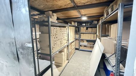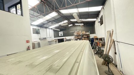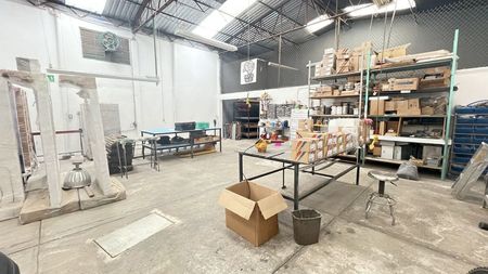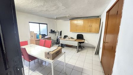 Cuenta con oficina de 2 niveles y tapanco bodega, buena luz natural