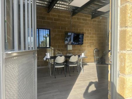 con una altura de 12.50 mts, bien iluminada y ventilada cuenta con instalación de luz trifasica, además de tener rampa de ingreso se encuentra dentro de Parque industrial con velador y video vigilancia 24/7 cuenta con amplio portón automático, extenso patio de maniobras, vías de acceso e ingreso para los tráiler mas amplios además de tener piso de concreto hidráulico MR 45, areas comunes varias como oficina con Coffe break y baños para hombres y mujeres con regaderas y área de descanso.