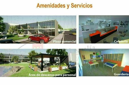- Cancha de fútbol, Lago artificial, Gimnasio, Farmacia, Áreas verdes, Plaza comercial, Cafetería, Guardería y Área de descanso