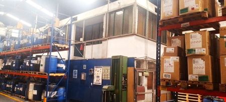 Cuenta con una superficie de 3,600 m2 de terreno y 3,600 m2 de construcción, con techos de 6 metros en su parte más baja y de 8 metros en su parte más alta, cuenta también con 2 áreas de oficinas, baños para hombres y mujeres, pasillo lateral independiente para el personal de oficina fuera del área de almacenamiento y cisterna.