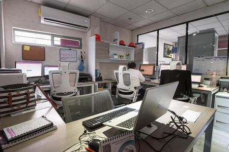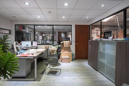 Oficinas administrativas de 79 m2 y comedor de 33.6 m2, modulo de recepción y 4 oficinas separadas, cada una con capacidad para 4 estaciones de trabajo, capacidad de 16 escritorios.