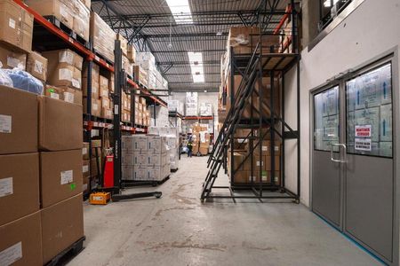 Área de carga y descarga con entrada para camionetas. Cuenta 2 Almacenes de alta seguridad con puertas blindadas y sistema biométrico de acceso controlado para resguardo de alto valor.