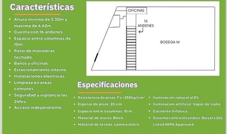 Bodega dentro de parque industrial con entrada independiente, patio de maniobras techado seguridad y vigilancia 24 hras.