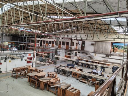 Nave industrial con amplias áreas de producción y almacenamiento.