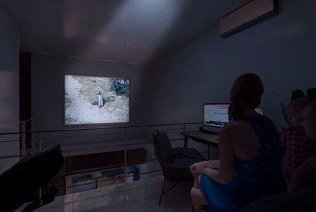 Cuarto de estudio o juegos en planta alta, con barandal.