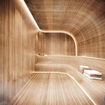 Este nuevo desarrollo cuenta con múltiples albercas, un bar en la azotea, un gimnasio y centro de bienestar, un área de yoga, un spa con sauna y más. El complejo es seguro con entrada cerrada y seguridad las 24 horas. Tiene un vestíbulo tipo hotel, una cafetería, elevadores, estacionamiento subterráneo y Wi-Fi en las áreas comunes. También ofrece tecnologías sostenibles como cargadores de autos eléctricos y paneles solares para energía verde.