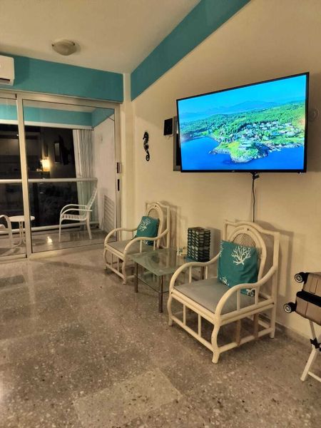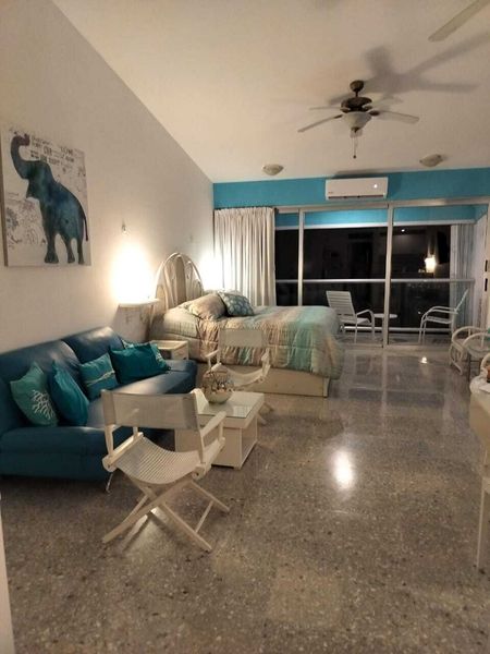 Equipado con aire acondicionado, balcón para relajarse y sentir la brisa marina, amplio salón distribuido en cocina abierta con estufa y barra desayunador, sala-comedor y habitación con vista al mar, baño y lavandería, 1 cajón de estacionamiento .