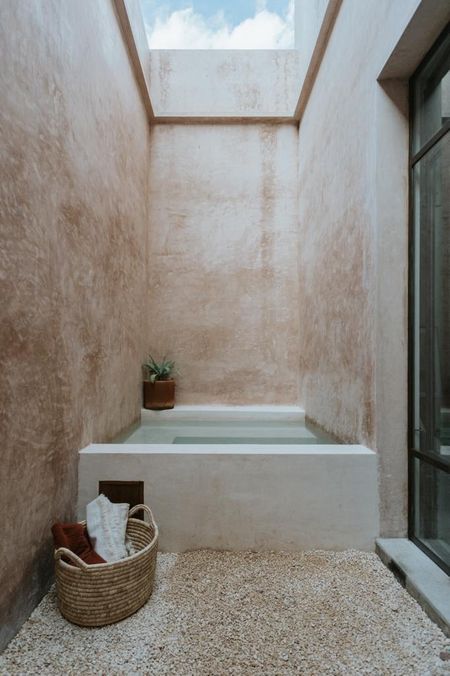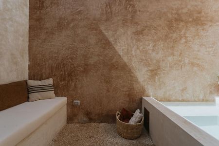 Las áreas comunes compartidas permiten el encuentro entre residentes, además de funcionar como filtro para la intimidad y privacidad de cada casa del complejo. Los muros funcionan como pantalla escultórica para resguardar el área de alberca compartida y configurar el patio central.