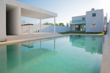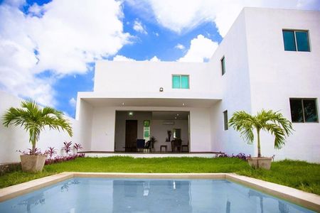 Casa de 2 plantas ubicada en Chacté Residencial, en Dzitya, con un terreno de 560 m2 y construcción de 305 m2. Frente 12.33 m y Fondo 45.42 m.