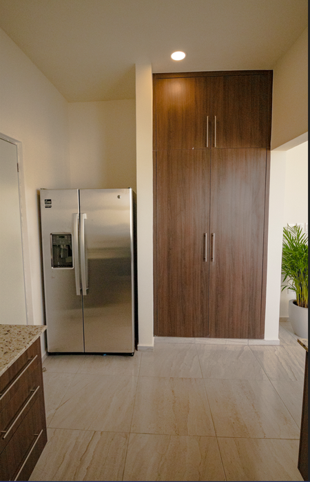 -Cocina con alacena (Cocina cubierta de granito sobre muebles, gavetas inferiores fabricadas en MDF o MDP texturizado)