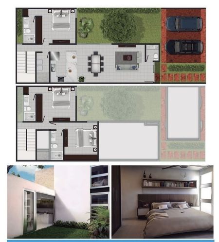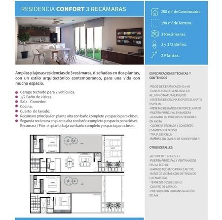 Amplia residencia de dos niveles con 3 recámaras, cada una con baño completo, diseñadas con estilo contemporáneo.